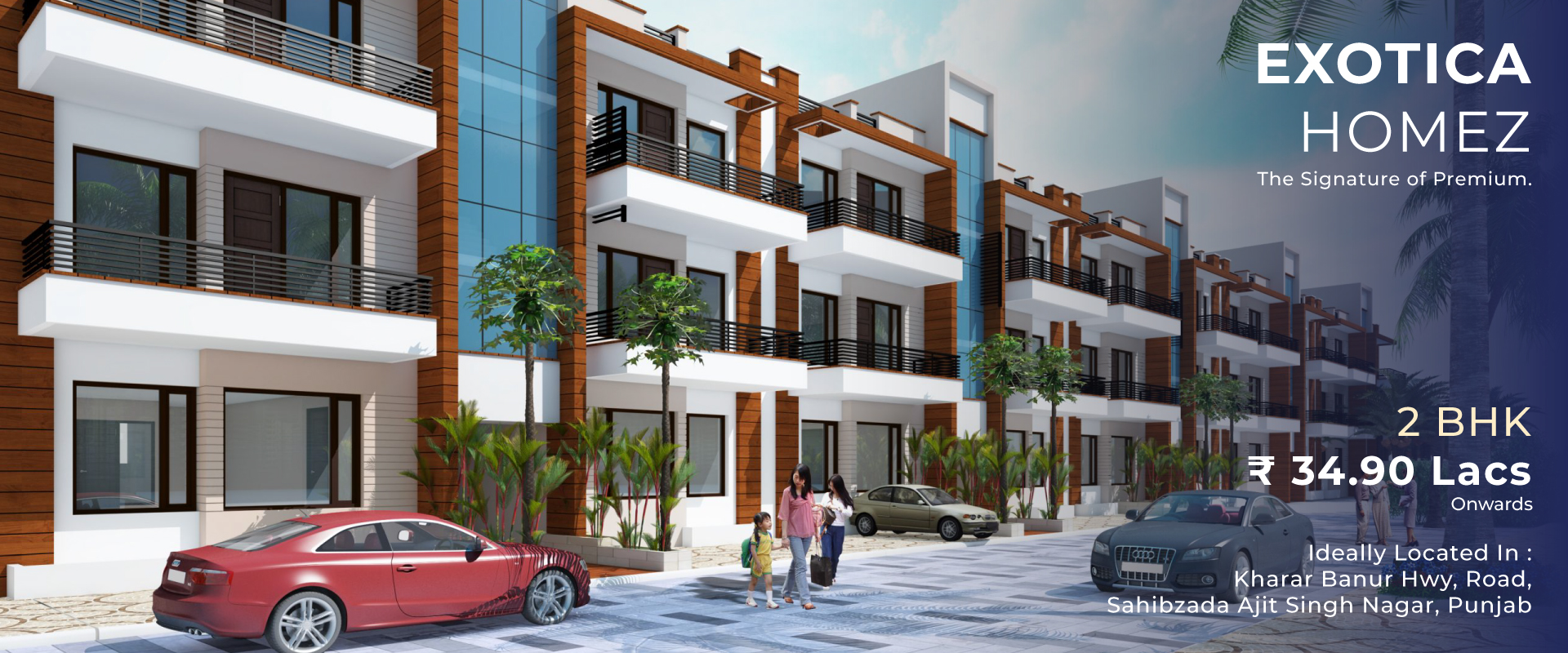 Exotica Homez (RERA Reg. No. : PBRERA-SAS80-PR0285), ideally located in a nature friendly ambience on KhararBanur Road (NH-205A), spread over 7.525 acres of land with 68% open space, beautifully designed by experienced group ARKIZINE. Having lush green park, children play ground, clubbed with all amenities Viz Club House, Swimming Pool, Health Club, Shopping Arcade at per with international standards