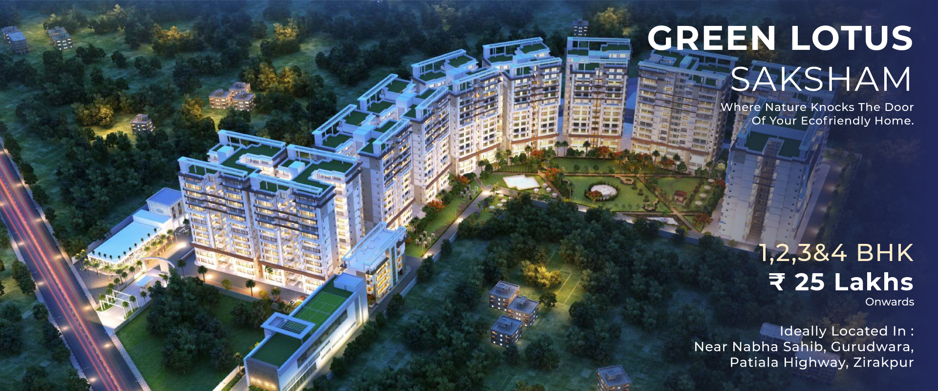Green Lotus Saksham creates a perfect blend of luxury flats in Zirakpur and our responsibility towards the environment. Nestled amidst greenery, this green residential project provides flats in zirakpur, an entirely different living experience that promotes Eco-sustainability. It includes, 3BHK, 3+1BHK, 4BHK and 5BHK flats, penthouses and flats in Zirakpur that offers plush and elegant living. Eco-friendly homes in zirakpur contributes to making the planet greener and livable for the present and the future generations. It helps to live a life in tune of green needs at apartments in Zirakpur.