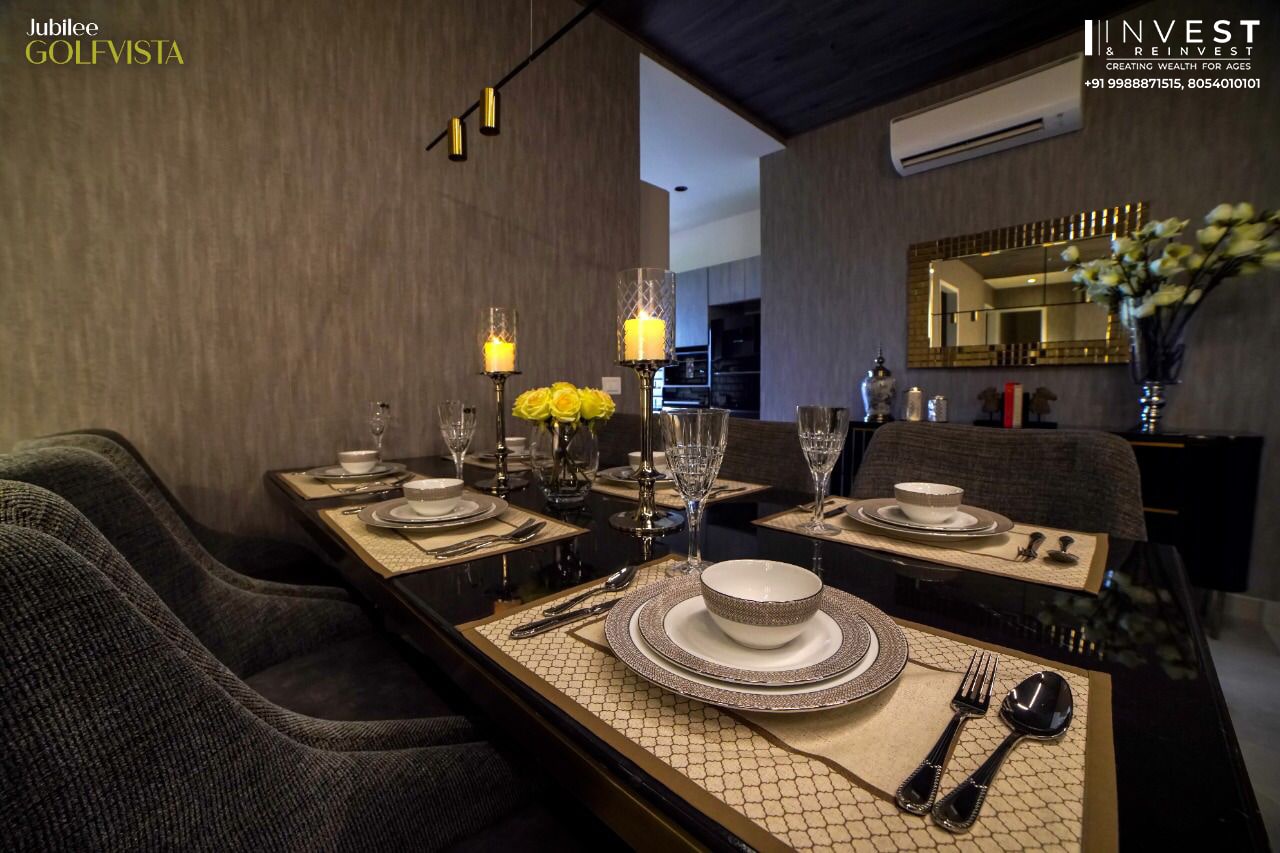 Jubilee GolfVista welcomes you to 6.25 acres (approx.) of gated community that has been designed to take care of all your modern requirements. The product has been divided into two segments to meet the housing needs of different people. Platino 3+1BHK Apartments present utmost luxury and privacy to the residents and Aurum, on the other hand is 3 BHK Apartments specifically designed to offer a modern lifestyle. Every home has been designed in a way that it allows access to natural light and ventilation. The landscaped gardens and greenery all around will keep you connected to the nature.