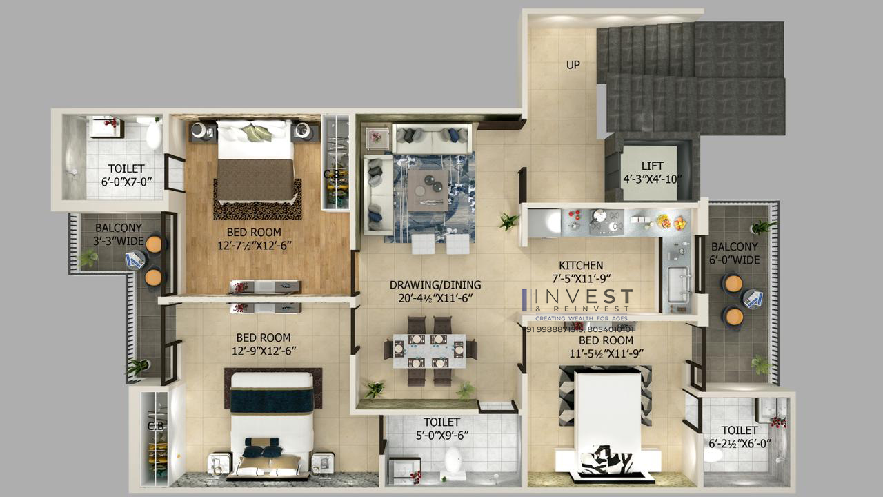 - 3 BHK Independent Builder Floors with LIFT facility.